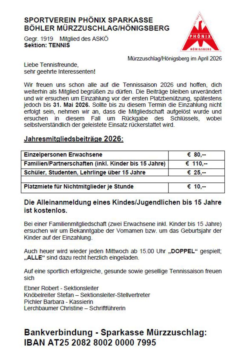 Bitte den (leicht erhöhten) Mitgliedsbeitrag einzahlen wie gehabt (SIEHE UNTEN) - wir freuen uns auf ein Wiedersehen am Platz!